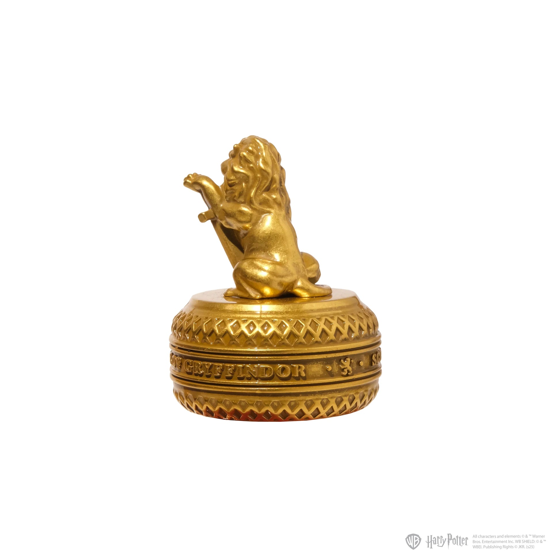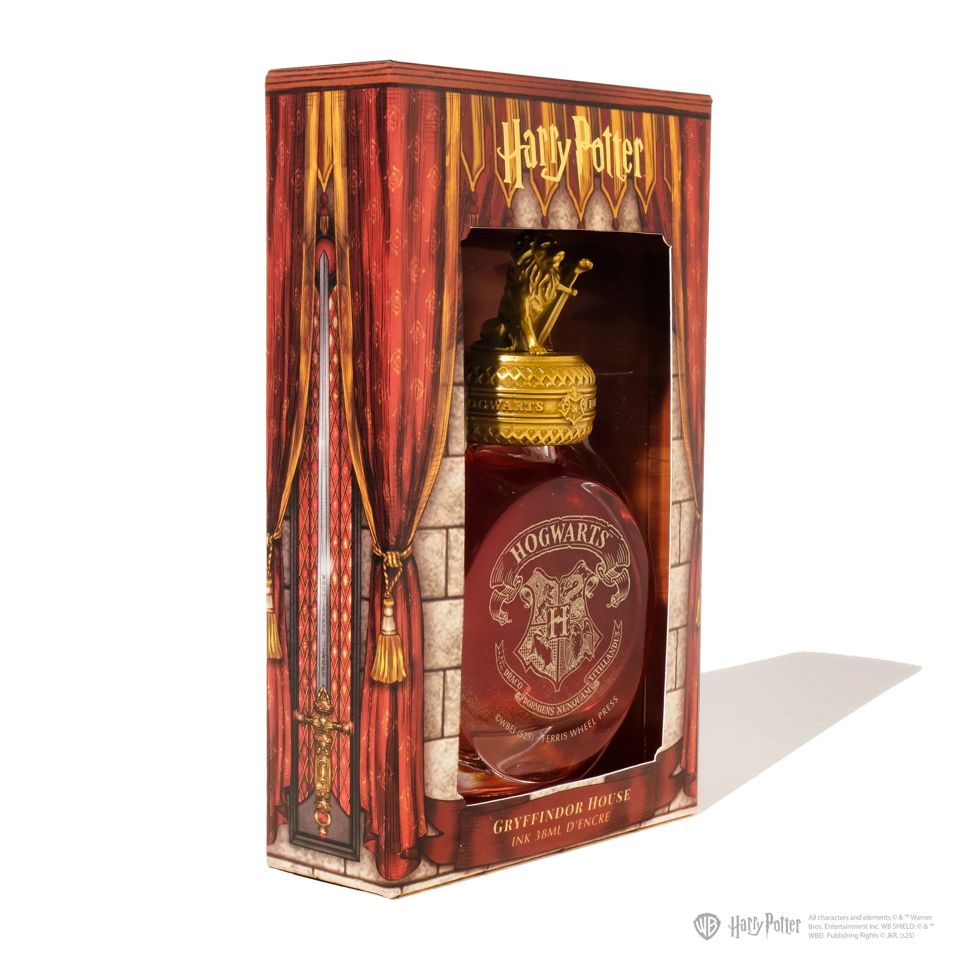 El frasco, coronado por un tapón metálico con el emblema de Gryffindor, se presenta como una auténtica pieza de colección, pensada tanto para usar como para lucir en el escritorio.